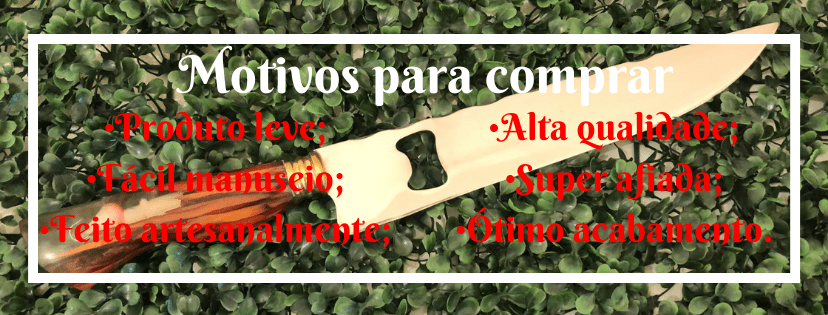 O aço usado na FACA ARTESANAL CABO HÍBRIDO é super resistente, com isso o fio se manterá por muito tempo, qualquer faca deve ser bonita, mas principalmente deve ser muita afiada, afinal ninguem gostaria de adquirir um produto que tenha pouca vida útil.