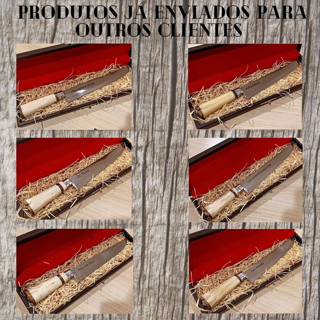 FACA ARTESANAL PARA BRINDE INOX 12 POLEGADAS CABO DE OSSO